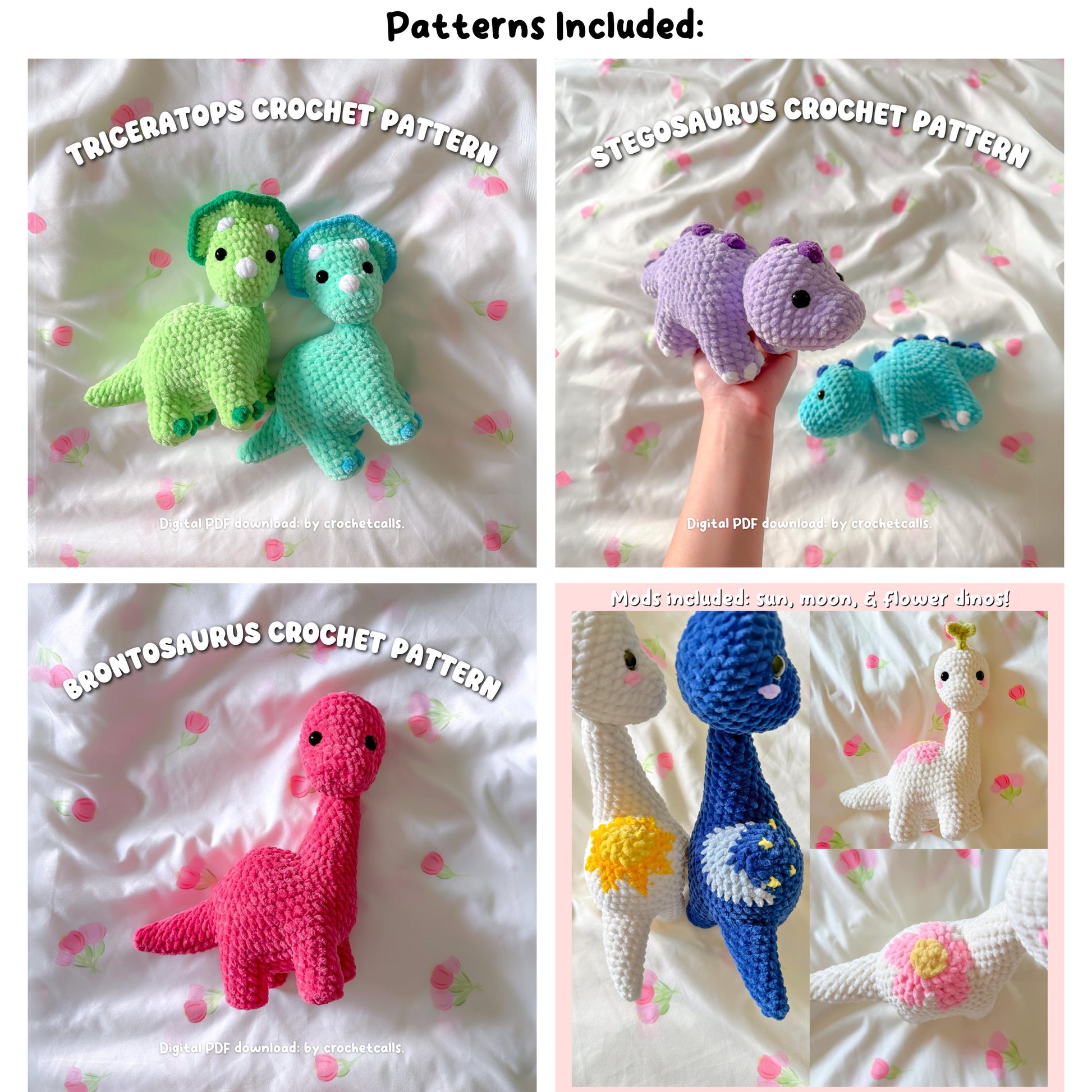 3 in 1 Dinosaur Crochet Pattern Bundle PDF Includes Brontosaurus Stegosaurus and Triceratops Plushies Amigurumi Low Sew Digital Pattern