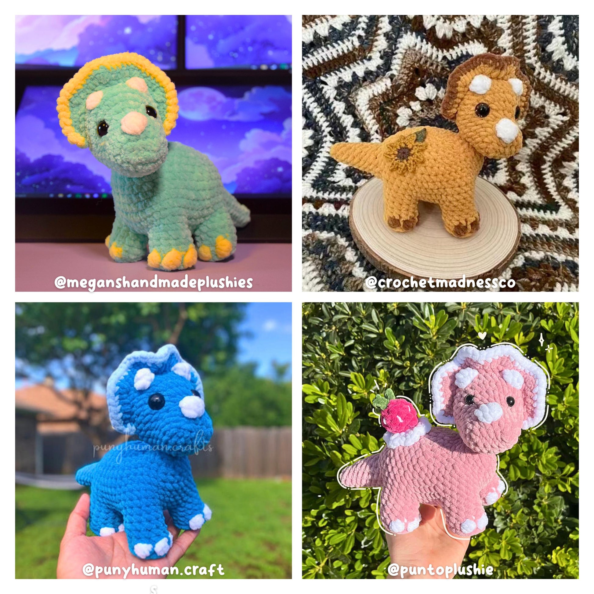 This tiny triceratops is ready to stomp right into your heart. This digital crochet pattern walks you through how to make your own plushie dinosaur with easy-to-follow steps, a low sew design (just the head!), and tons of personality.